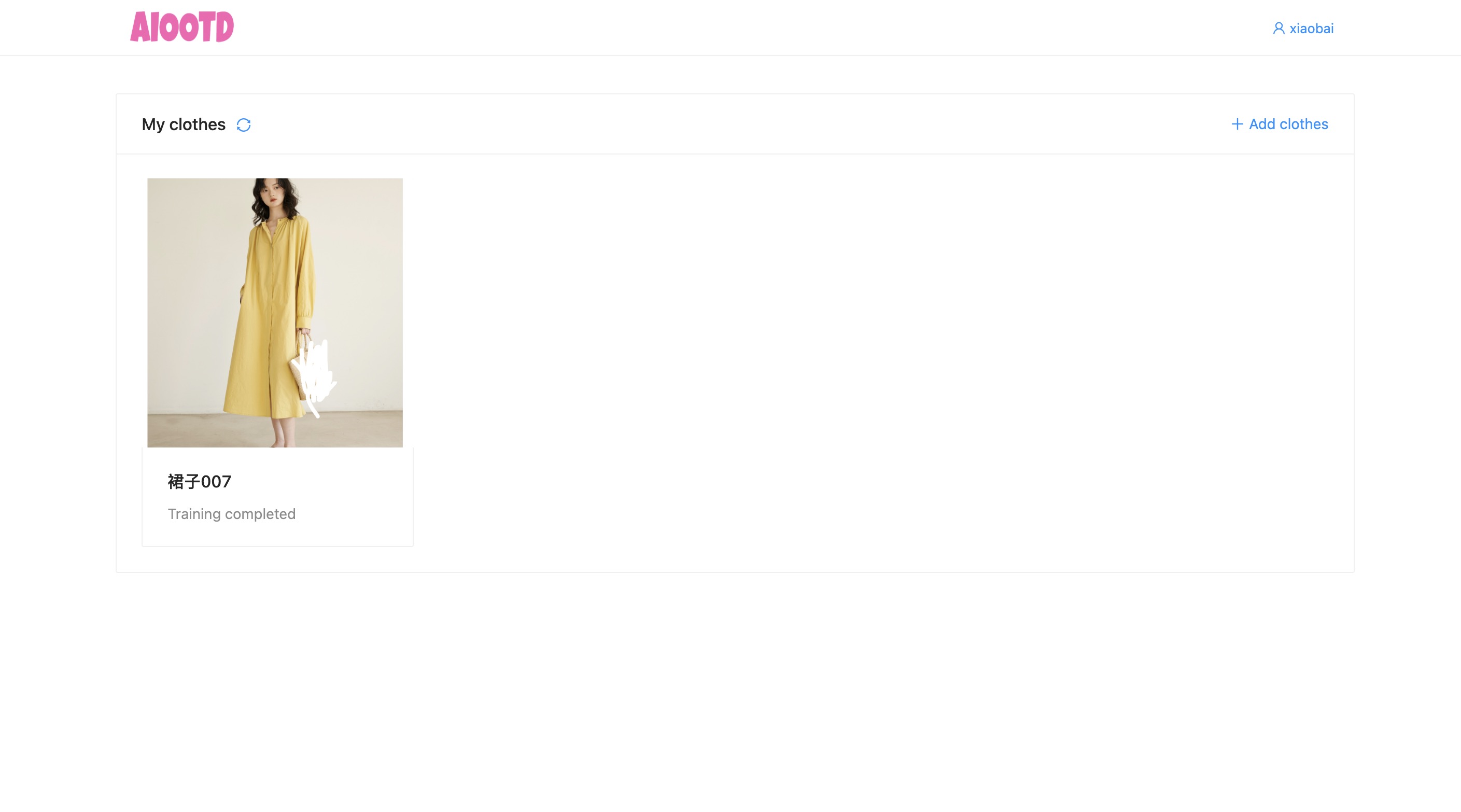 一个 AI 服装模型训练平台,传入几张衣服素材可以训练出一个 Lora 模型,模型可用于生成 AI 服装图片。