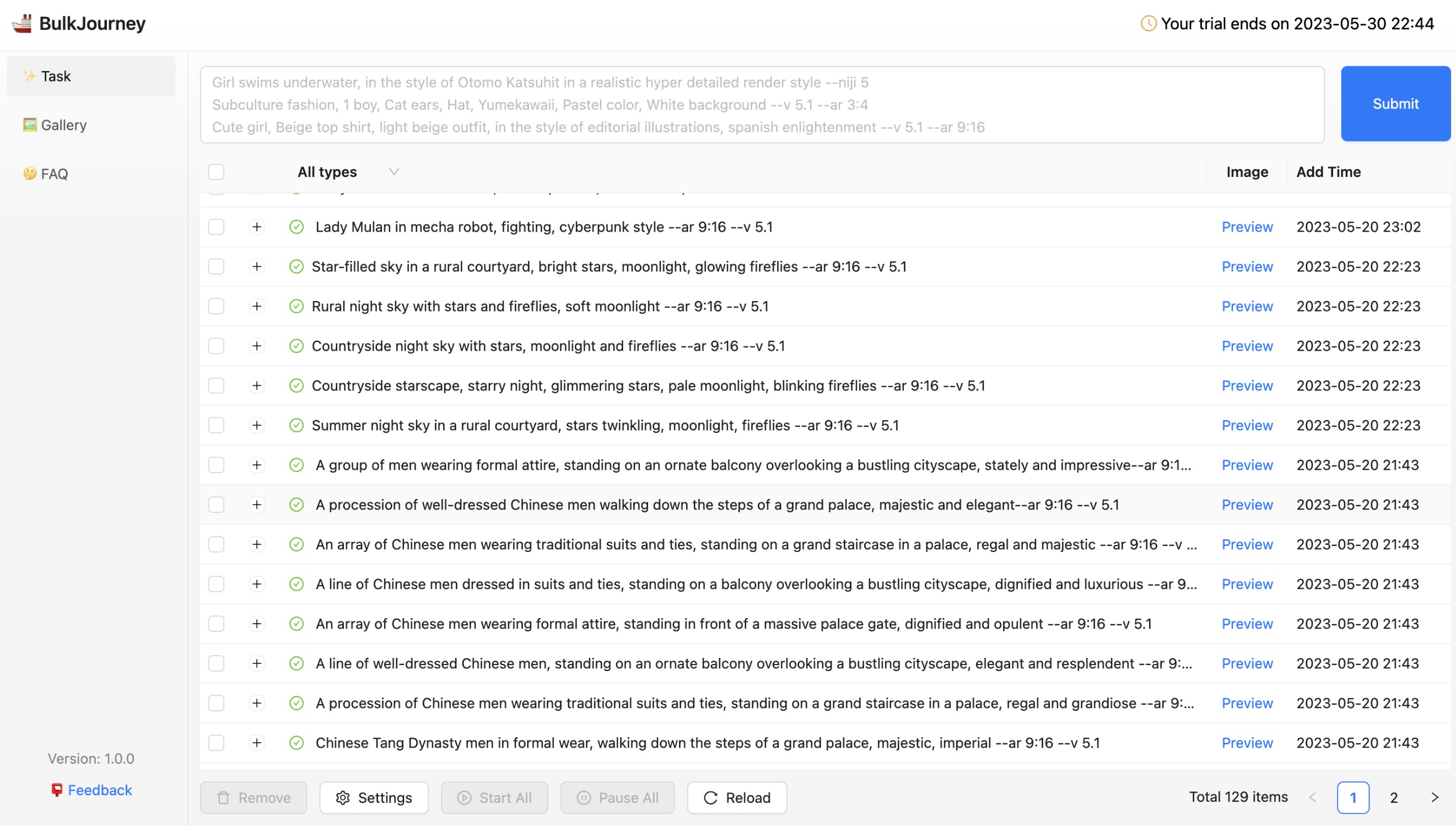 一个第三方的 Midjourney 生成软件,支持批量输入提示器生成图片。