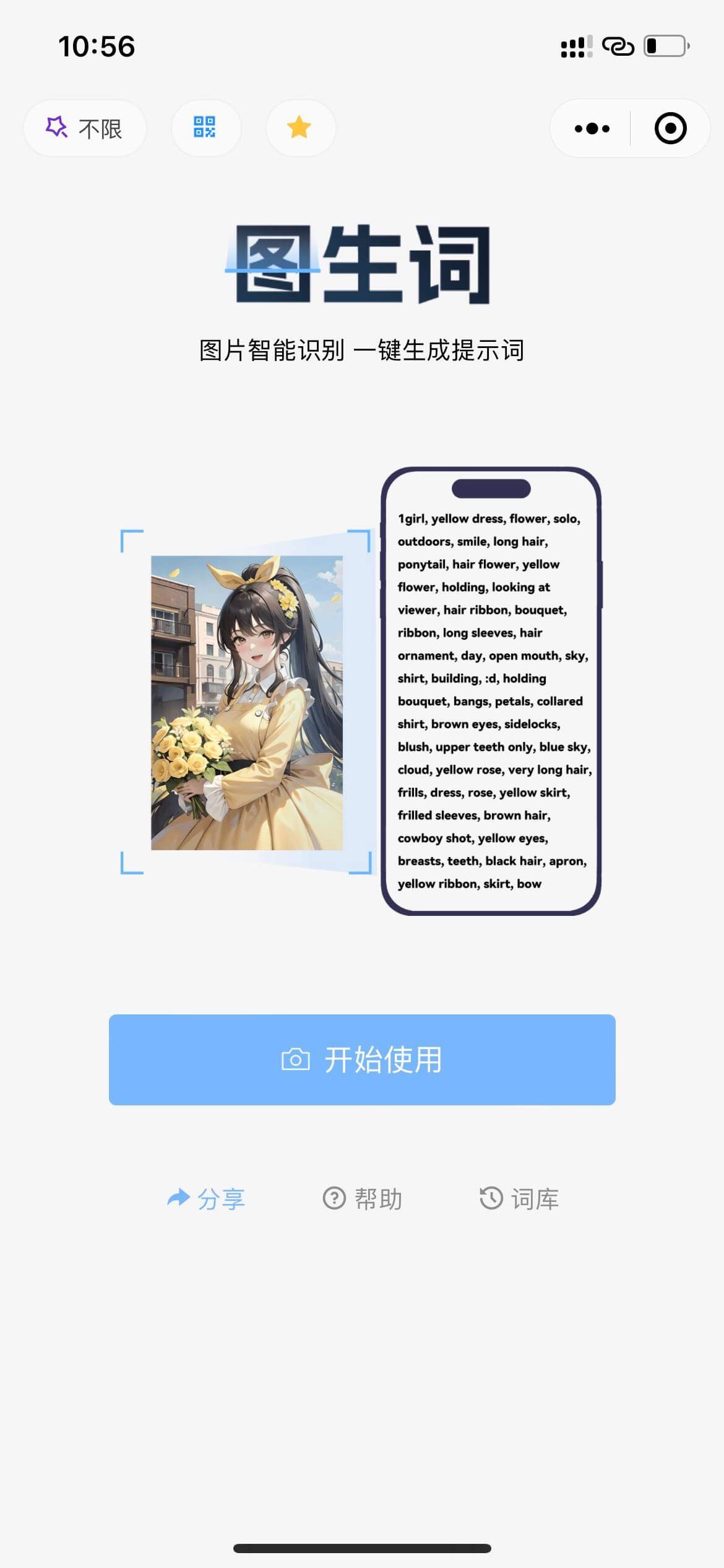 一个识图小程序,让用户可以在微信内长按识别图片,一键生成 AI 绘画提示词。