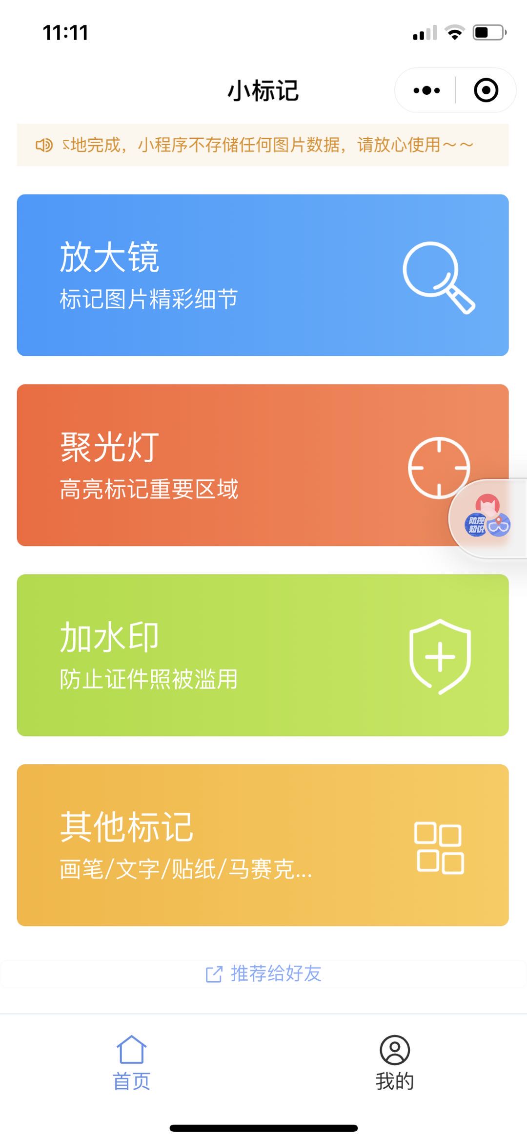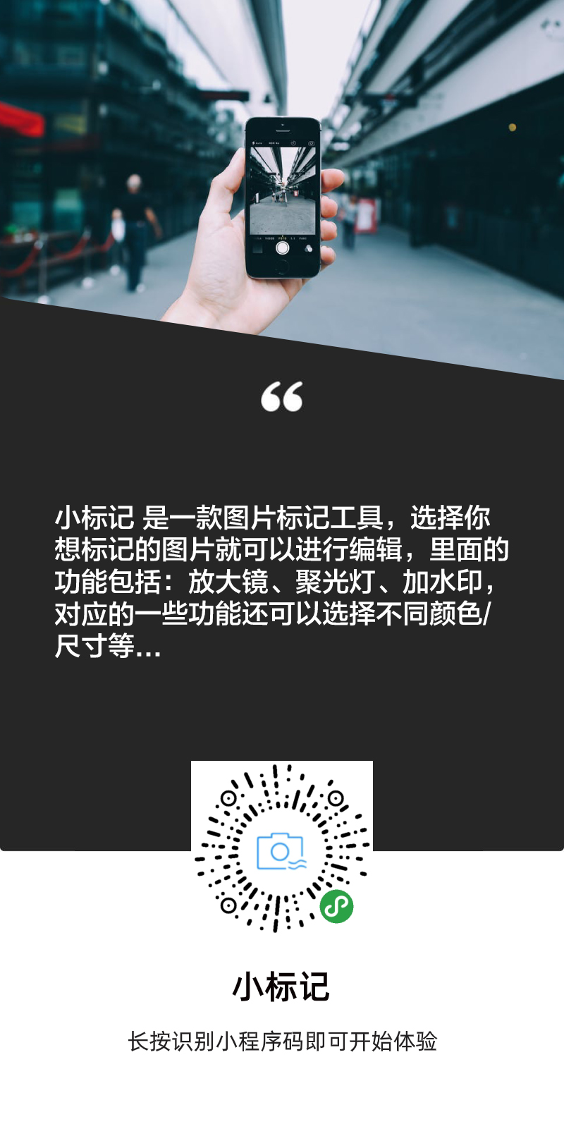 一款图片标记小程序,功能包括:放大镜、聚光灯、加水印、闪照,这是我做的第一个小程序。