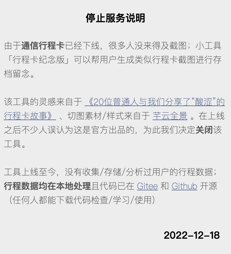 一个生成「纪念版行程卡」H5小工具,当时持有 xingchengka.com 最后由于用户过多,提前关停工具。